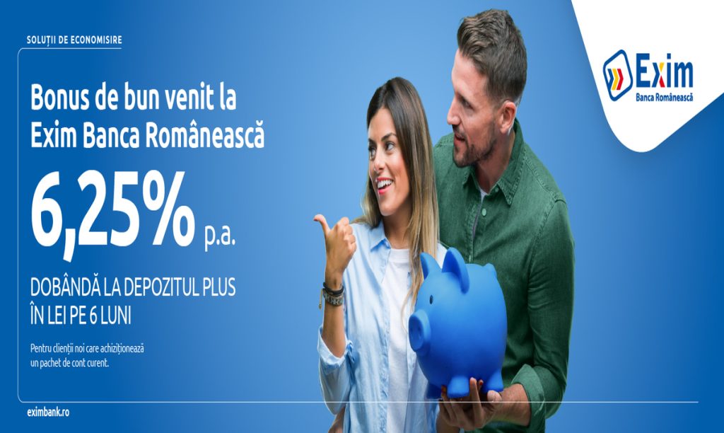 Pentru persoanele fizice, clienți existenti, care vor să economisească, Exim Banca Românească menține oferta de dobândă de 6,10% p.a. pentru Depozitul PLUS în lei constituit din fonduri noi pe o perioadă de 6 luni.