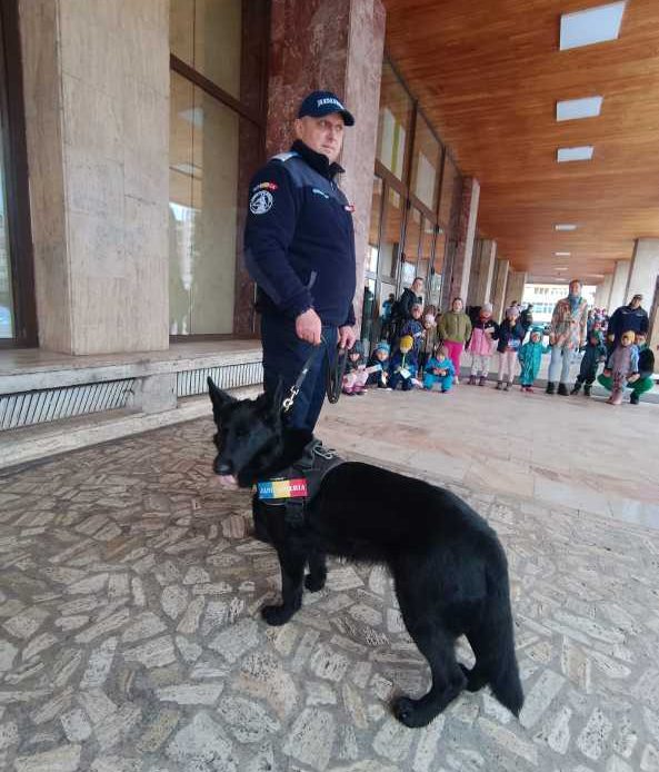 Zeci de copii de la școlile și grădinițele din oraș au venit pe platoul din centrul orașului și au admirat autospecialele de intervenție ale jandarmilor sau echipamentele folosite de jandarmii montani, dar cel mai mult au fost atrași de cei doi ‘jandarmi patrupezi’.