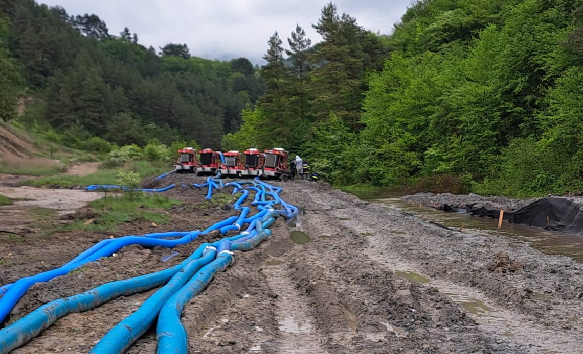 Intervenția din teren presupune eforturi susținute și echipamente de mare capacitate. Sunt utilizate opt motopompe remorcabile de mare capacitate – două aparțin Inspectoratului pentru Situații de Urgență (ISU) Harghita, una ISU Mureș și una Salinei Praid. În sprijin au fost trimise alte cinci motopompe din partea inspectoratelor pentru situații de urgență din județele Covasna, Neamț și Brașov.